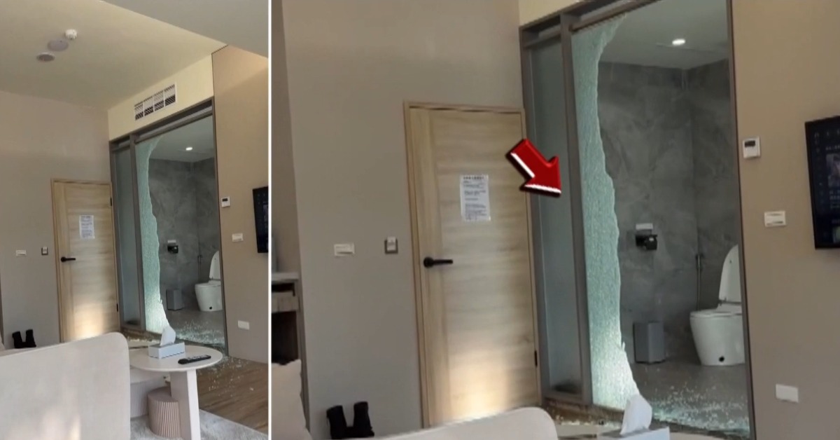入住情侶:「(業者)說我們這個沒有外力衝擊的話,是很難破掉的,她就是強調,我們這個是強化玻璃,而且我們目前都沒有發生過。整片玻璃要6000塊,但是我可能要拜託你們賠償一點點維修費,不賠沒關係,但是住宿費用沒辦法退。」