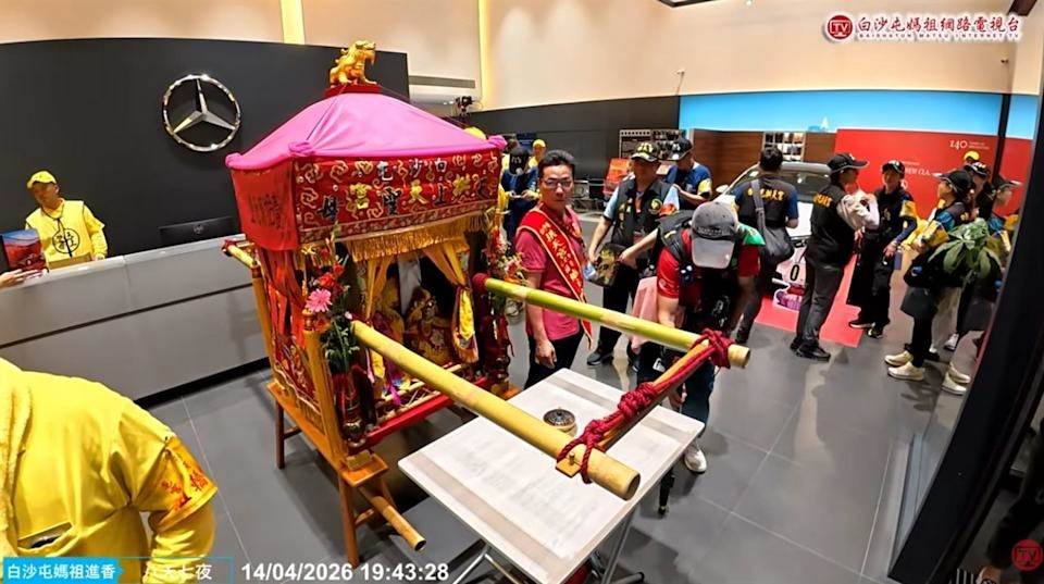 白沙屯媽祖14日晚間進駕中華賓士員林展示中心。(圖/ 白沙屯媽祖網路電視台)