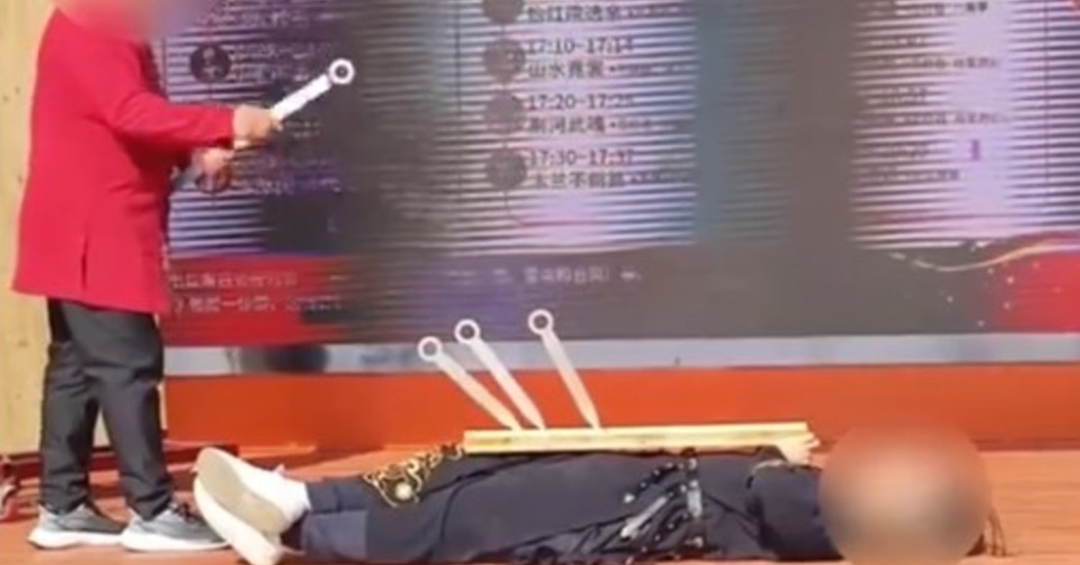 險毀容! 特技表演「飛刀」反彈 打中演員臉部生死瞬間,還有特技表演差點鬧出人命。景點安排小李飛刀的特技表演,過程中老師傅失手,飛刀砸到木板後反彈,竟然打到另外一名表演同伴的臉部,導致表演立刻中斷。